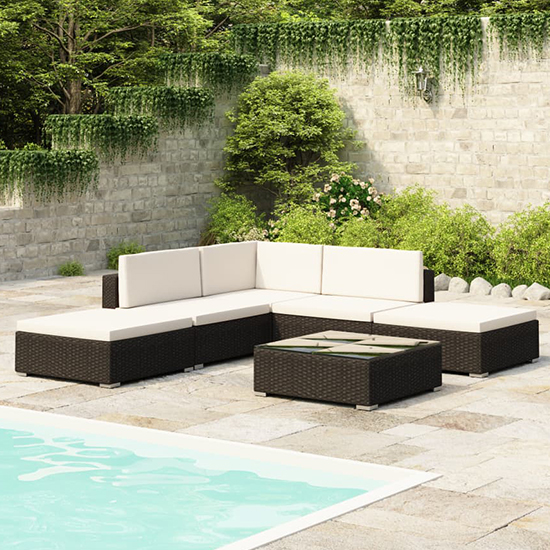 Gili Rattan 6 Piece Garden Lounge Set With Cushions In Black